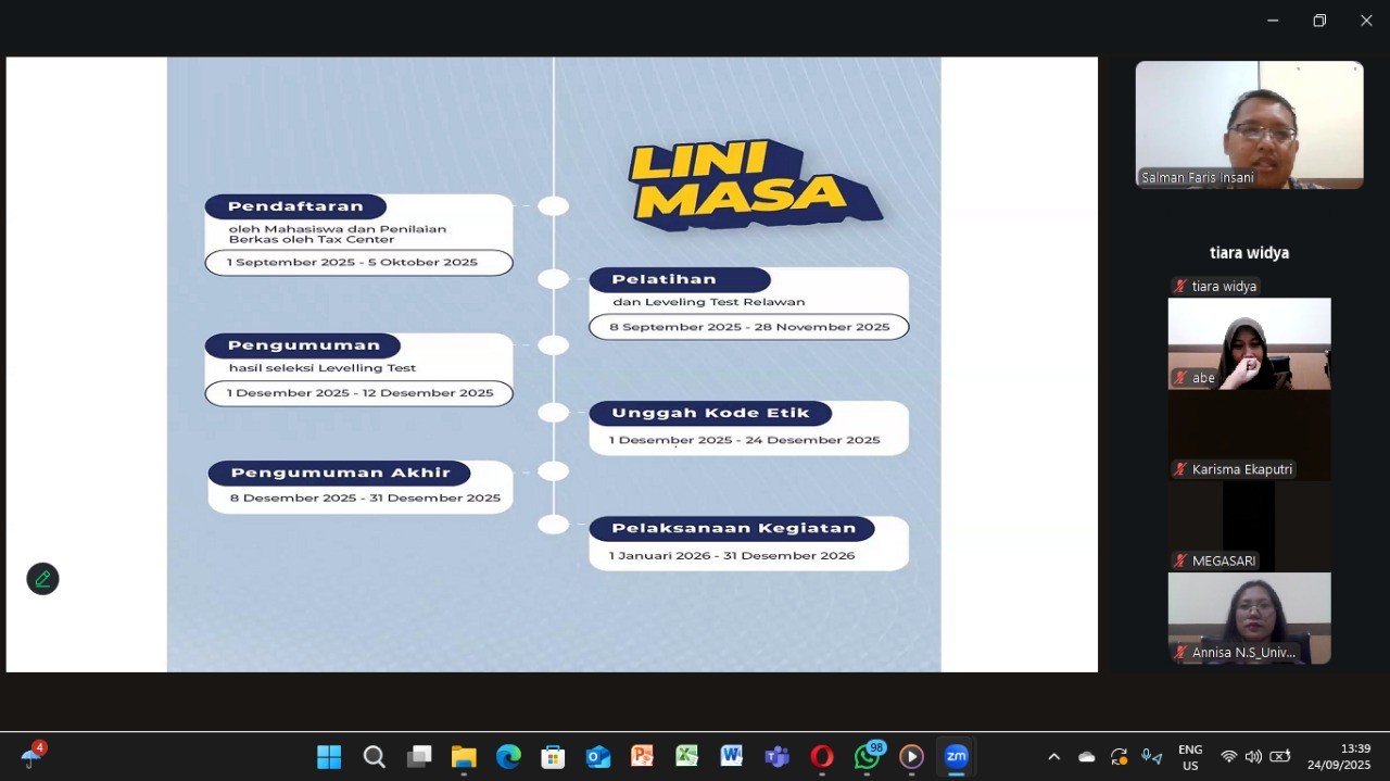 Mengnalkan apa itu relawan pajak kepada mahasiswa universitas veteran bangun nusantara lewat sosialisasi secara zoom meeting Sosialisasi Relawan Pajak yang di laksanakan pada hari Rabu, 24 September 2025 berlangsung secara lancar. Sosialisasi ini diikuti oleh mahasiswa Universitas Veteran Bangun Nusantara. Sosialisasi ini diadakan dengan tujuan untuk mengenalkan apa itu relawan pajak kepada mahasiswa. Dengan adanya sosialisasi ini, para mahasiswa dapat mengetahui apa itu relawan pajak. Dan dengan adanya sosialisasi ini juga, siapa tau mahasiswa berminat untuk mendaftar Relawan Pajak (Rinjani) yang diinisiasikan oleh Direktorat Jendral Pajak (DJP). Dalam sosialisasi yang dilaksanakan, Salman Faris Insani S.E., M. M selaku Narasumber pada kegiatan Sosialisasi Relawan Pajak menjelaskan bahwa Progran Rinjani hanya bisa diikuti oleh mahasiswa yang universitasnya memiliki Tax Center. “Mahasiswa Universitas Veteren Bangun Nusantara ini sangat beruntung karena memiliki privilege. Kenapa? Karena Program Rinjani ini hanya bisa di ikuti oleh mahasiswa yang memiliki Tax Center di Universitasnya. Sedangkan tidak semua kampus memiliki Tax Center” Salah satu peserta Sosilalisasi Relawan Pajak berkata bahwa dia sangat minat dalam Program Rinjani ini dan berencana untuk mendaftar.“Setelah mendengarkan materi yang disampaikan Bapak Salman Faris Insani S.E., M. M selaku narasumber, saya jadi mengetahui apa itu Rinjani dan saya sangat berminat untuk mendaftar dan mengikuti program tersebut” Dengan adanya respon dari salah satu peserta, membuktikan bahwa Sosilalisasi ini dapat dikatakan berhasil dalam menjelaskan terkait Rinjani kepada para peserta Sosialisasi.