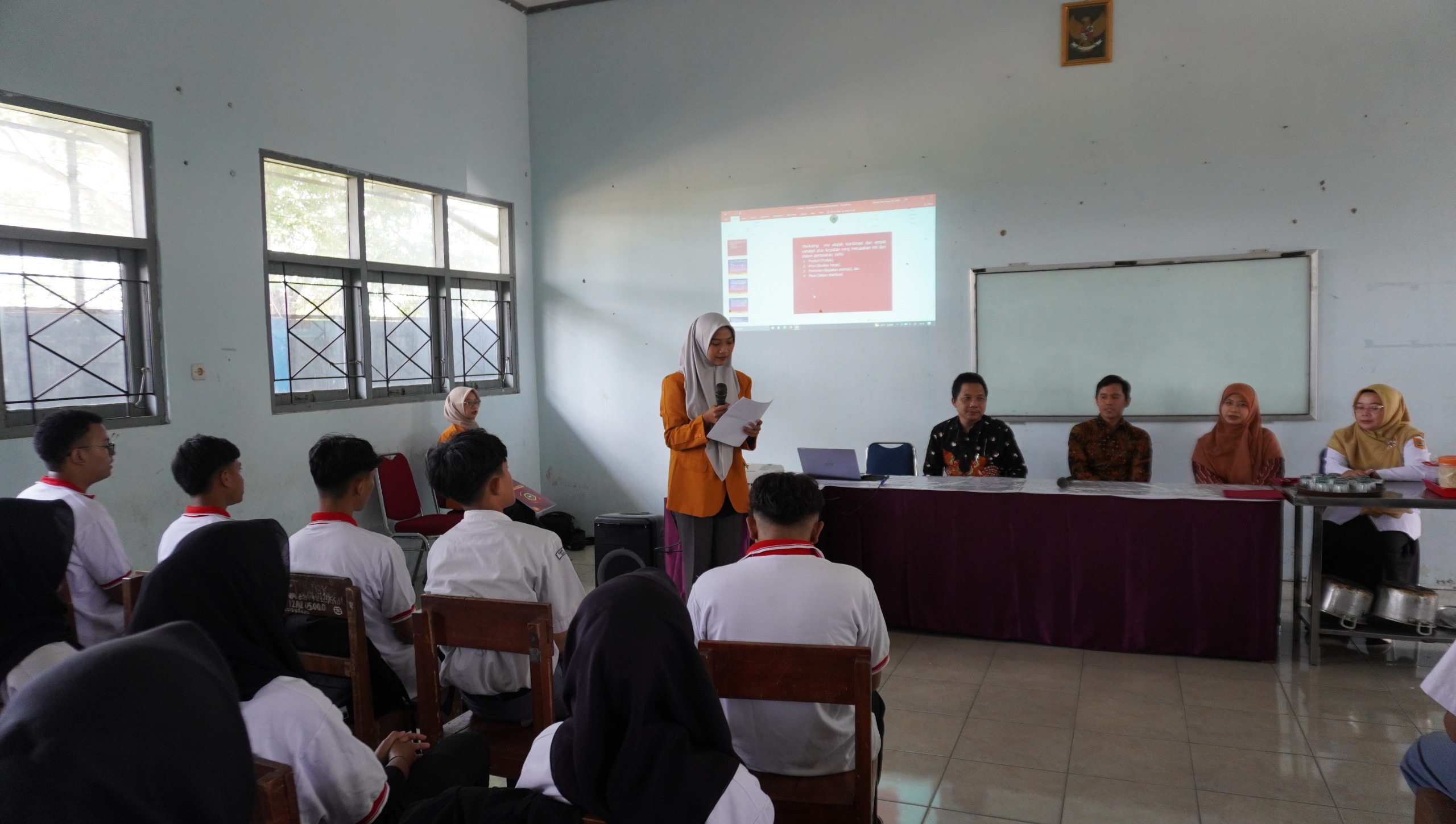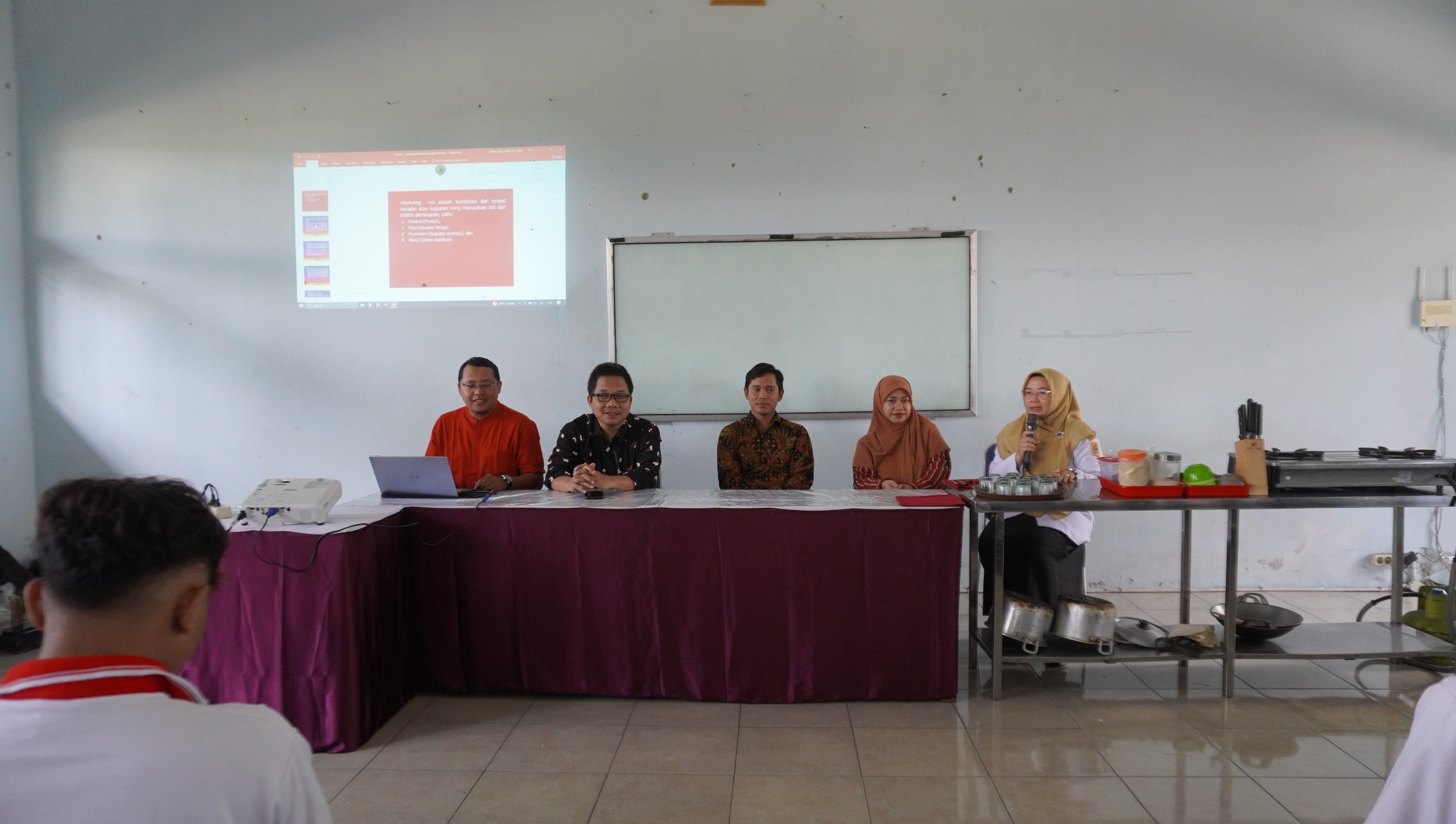 Kegiatan dibuka secara resmi oleh pembawa acara dan dilanjutkan doa Bersama oleh mahasiswa Fakultas Ekonomi Univet Bantara yang berperan aktif dalam kepanitiaan dan asistensi pelatihan, serta diikuti dengan sesi sambutan dari Dewi Ambarwati, S.Pd., selaku Ketua Jurusan Kuliner SMK Negeri 3 Sukoharjo. Dalam sambutannya, beliau menyampaikan apresiasi atas kontribusi Fakultas Ekonomi Univet Bantara dalam mendukung penguatan kompetensi kewirausahaan siswa melalui pendekatan yang aplikatif dan relevan dengan kebutuhan dunia usaha.